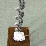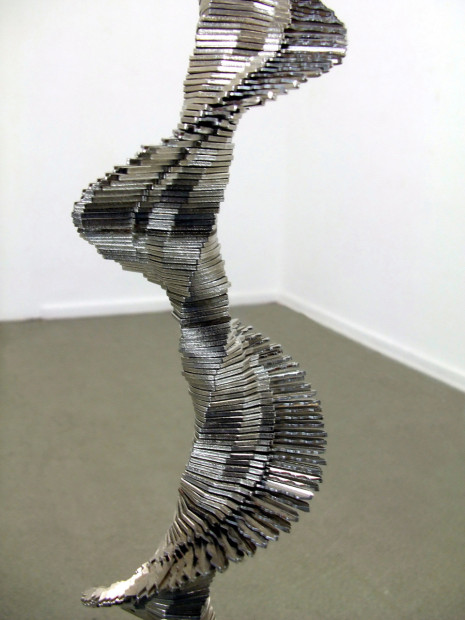 This work is based on the relicts of a once 47.000 m² large building in Hamburg Altona. The Calvi-Skeleton is made out of 597 lined-up cabinet, security, central and locker keys. The design of the key has been created on the basis of the spine structure of mammals. The arrangement of the keys is inspired by the spiral shape of a DNA strand. The resulting object is in itself movable and rotating above a buildings demolition rest of the former edifice.