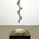 in sich beweglich und rotiert über einem Bausubstanzrest des ehemaligen Abrissgebäudes.